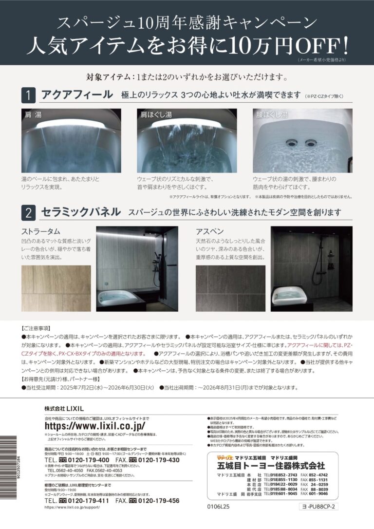 LIXILのバスルーム商品「スパージュ」が発売から10周年を迎え、ただいま感謝キャンペーンを開催中です!