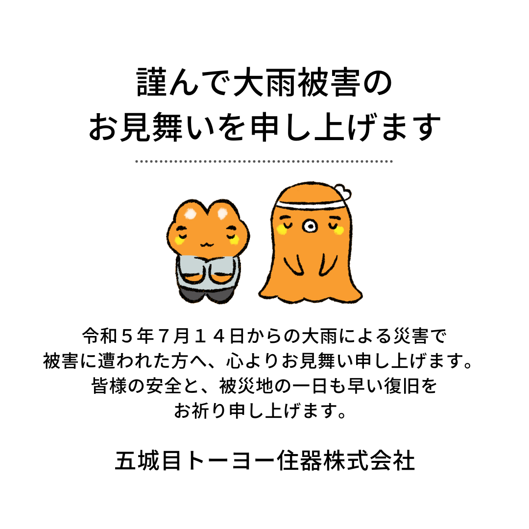 弊社は建材部が浸水被害に遭いましたが、現在は復旧しており、五城目トーヨー住器全店舗は通常営業しております。
