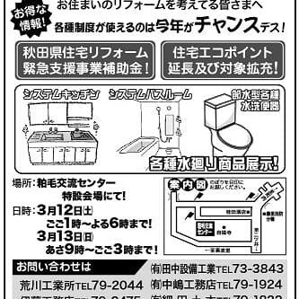 3月152011 『春の水廻り相談会』終了! イベントレポート, 五城目トーヨー住器㈱能代店 福岡 五城目トーヨー住器㈱ 能代店 企画イベント 『春の水廻り相談会』 3月12・13日の二日間開催いたしました。 続きを読む