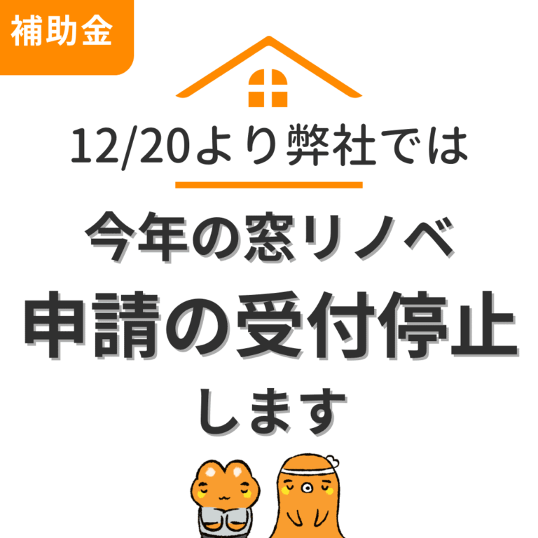 本日 2023年12月20日(水) をもって、”今年”の先進的窓リノベ事業を活用した窓リフォームのご依頼と、申請の受付を停止します。