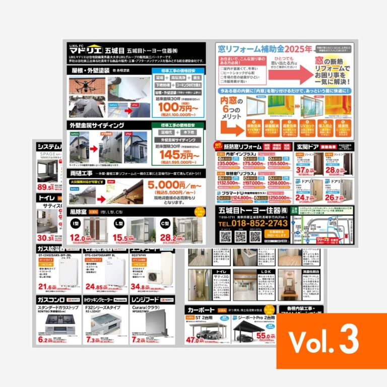 今年度最終のチラシを配布しました。補助金活用で暖かく、費用も抑えた窓リフォームを提案。施工事例や詳細もご確認ください。お気軽にご相談を!
