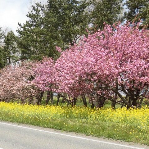 前回の記事 秋田県内人気お花見スポット2位の、桜と菜の花ロードの桜を見に行ってみた! では、染井吉野(ソメイヨシノ)をメインに撮影しましたが、今回は八重桜(ヤエザクラ)をメインに撮影。