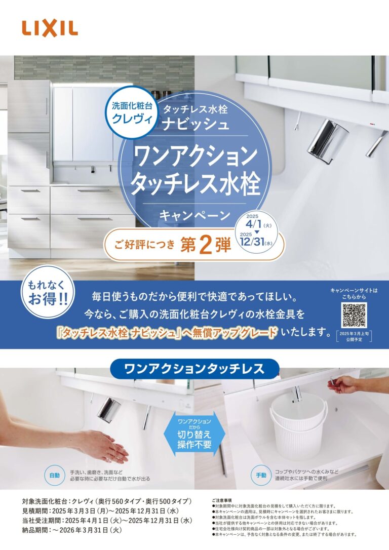 LIXILの洗面化粧台「クレヴィ」の特別キャンペーンがご好評につき第2弾として4月1日より開始されます!