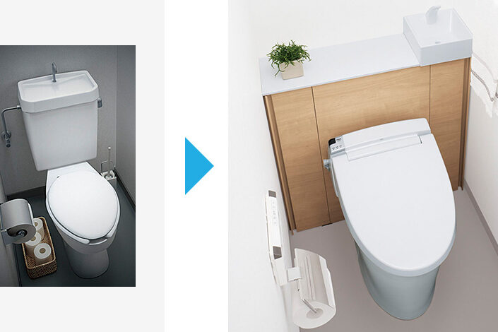 タンクをなくしたデザインや先進の機能で、トイレのスペースを、もっときもちのいい空間に。