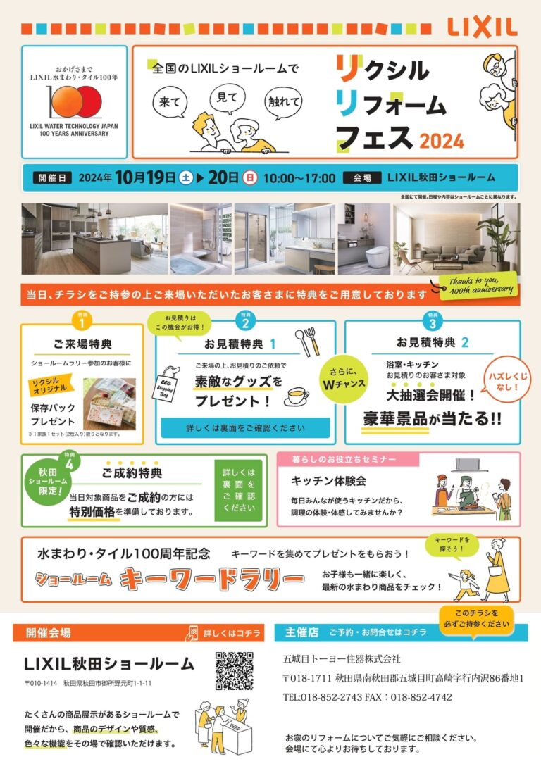 LIXIL秋田ショールームより「リクシルリフォームフェス2024」が実施されます!