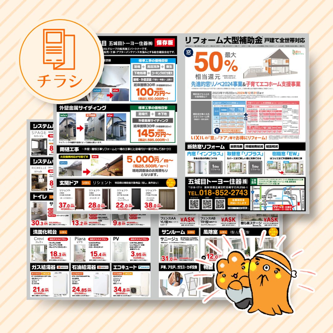 弊社が取り扱う、様々な住宅商品の参考価格が掲載中のチラシです!