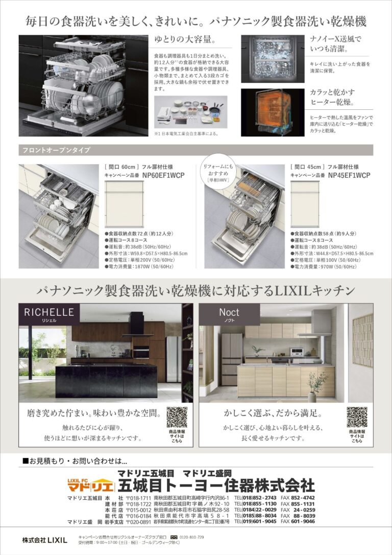 期間中にパナソニック製食器洗い乾燥機(フロントオープンタイプ)をセットで購入・設置すると、もれなく5万円 or 10万円オフ!
