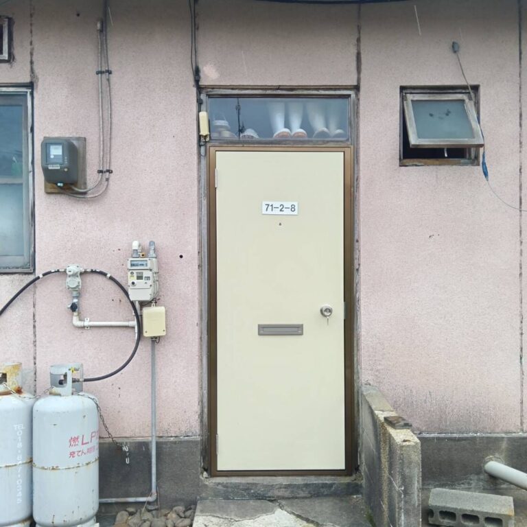 これは集合住宅の一部のドアでしたが、ご自宅の倉庫や勝手口にも使える商品です…