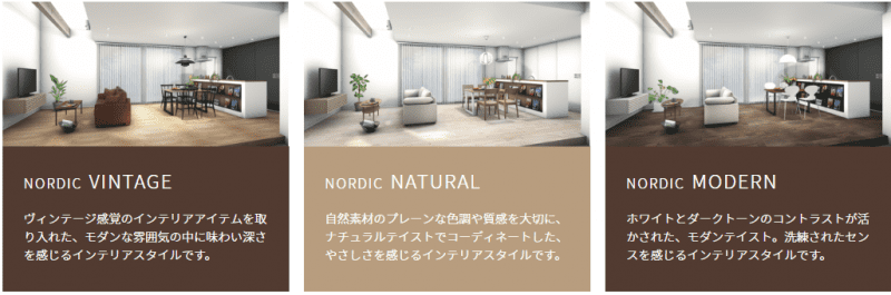 インテリアが3種類=家具類もセットで購入するから、普通に家を建てるよりお得!