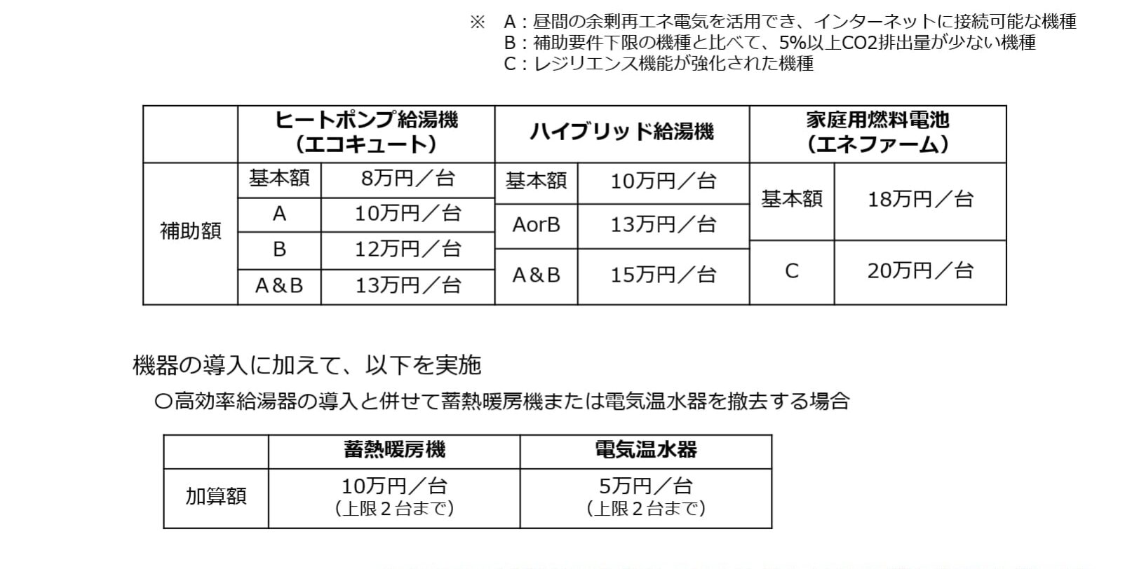 | 対象リフォーム | 特に省エネ性能の高い高効率給湯器の設置 |