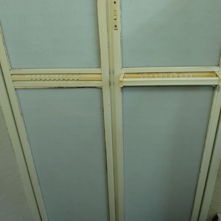 新しい折れ戸を吊り込むアタッチメント工法を採用しました。