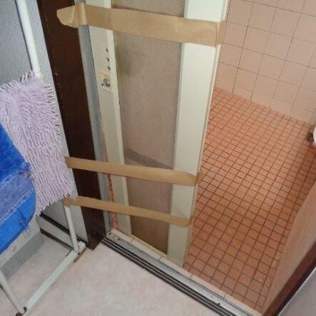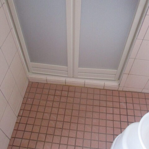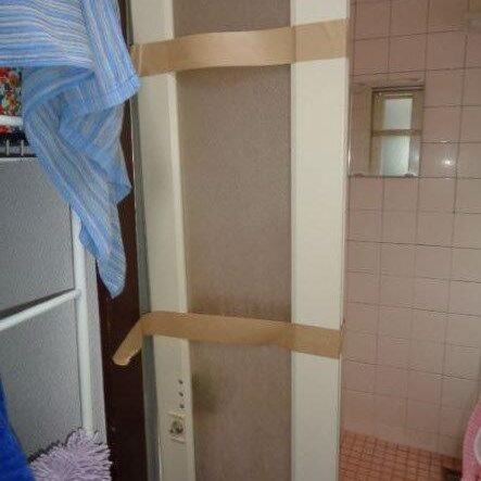 タイル風呂で既存の折れ戸はモルタルで固めてあり、解体することが出来ません。