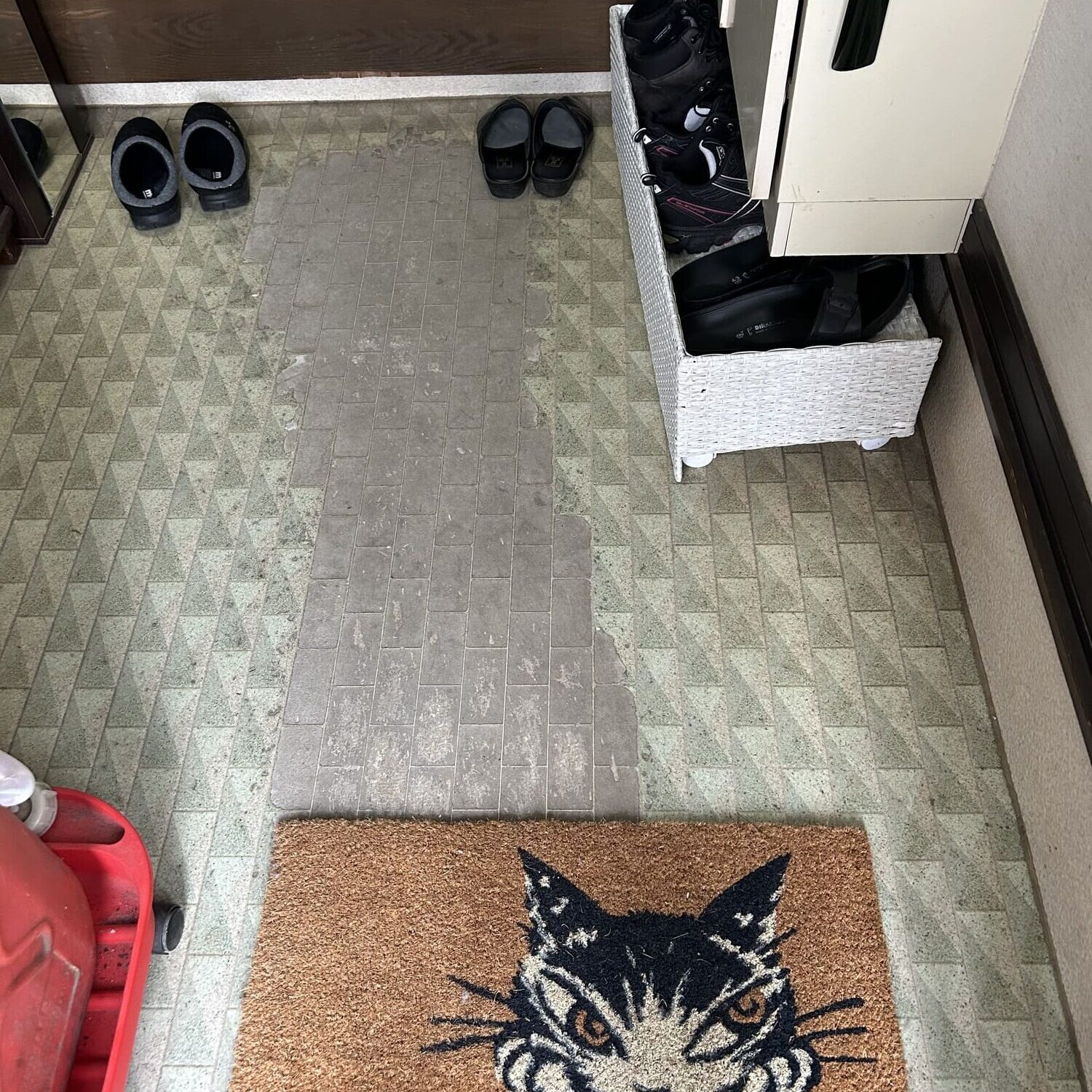 玄関の床が剥がれてきているので直してもらいたいとご相談があり、クッションフロアのご提案をしました。