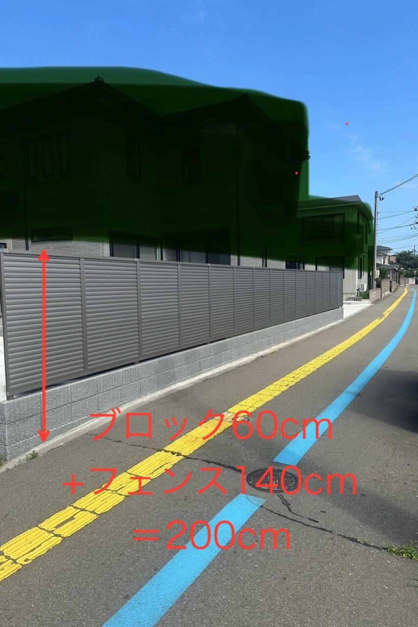 | 採用商品 | フェンス(LIXIL フェンスAB YL3型(横ルーバー)) 本体・柱カラー:シャイングレー フェンス全長:15メートル フェンス高さ(本体):1.4メートル 設置ベース(ブロック):60センチ 合計高さ:2メートル |