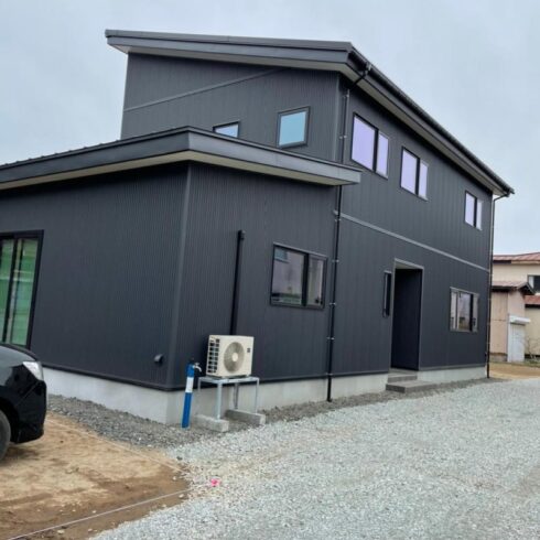 Danサイディングの中でも様々種類がありまして、今回はジオストライプという名前のエストブラックという色です。全面この1色で統一されております。
