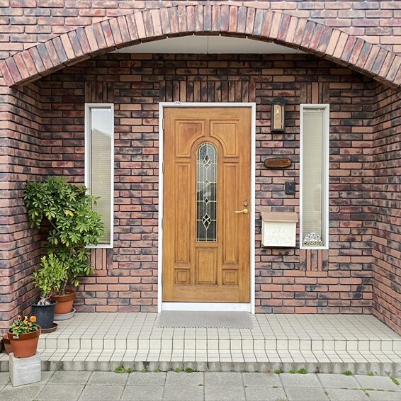 - 外観意匠のレンガや木製玄関ドアの雰囲気を損なわないように”クリエモカ”木目色にしました。