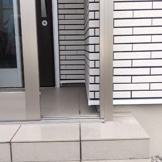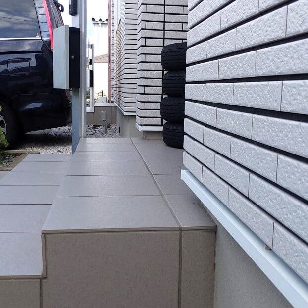 見た目は狭く感じますが出入りは楽に出来るようにします。 - タイルの目地からの雨水の侵入はタイル目地に合わせて風除室部材を取付防水処理をするので、完全防水とまでは出来ませんが防ぐことは出来ます。