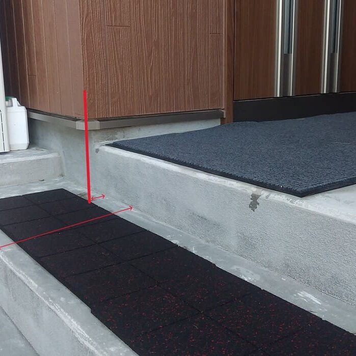 段差は踏み面のまたぎを想定し既存のゴムマットを再利用して